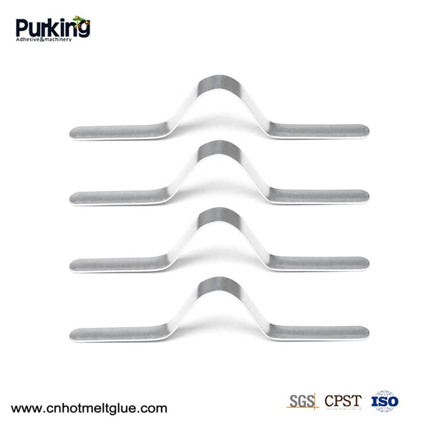 2. 5 mm 100% alumīnija deguna stiepļu sloksnes pieņem videi draudzīgu karstās kausēšanas adhezīvu procesu, kuru var lieliski savienot ar neaustu audumu.